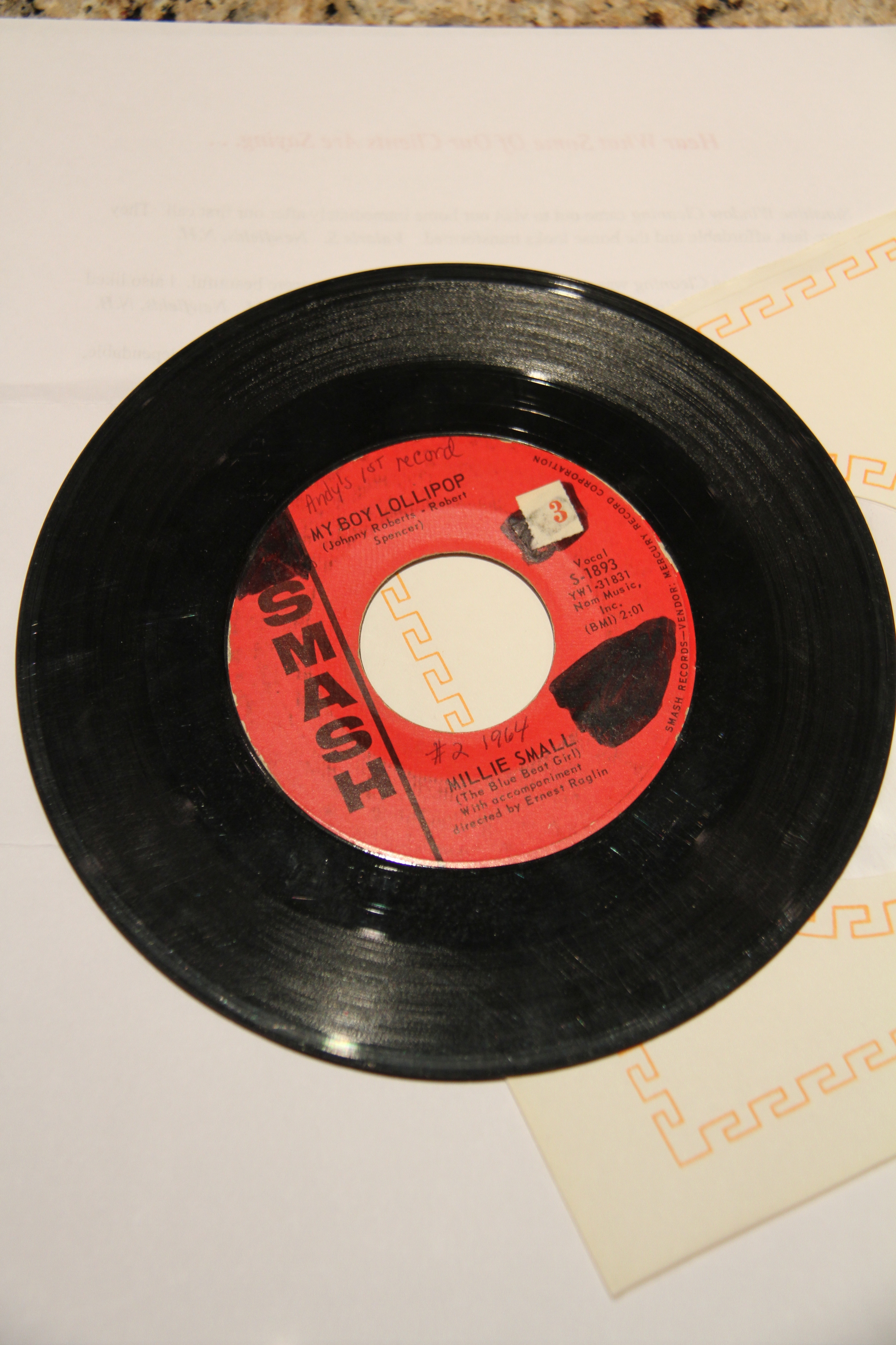 Here’s a photo of the first 45 I ever bought. It was the first reggae hit in America – way back in 1963 – and it reached # 2 on the charts.