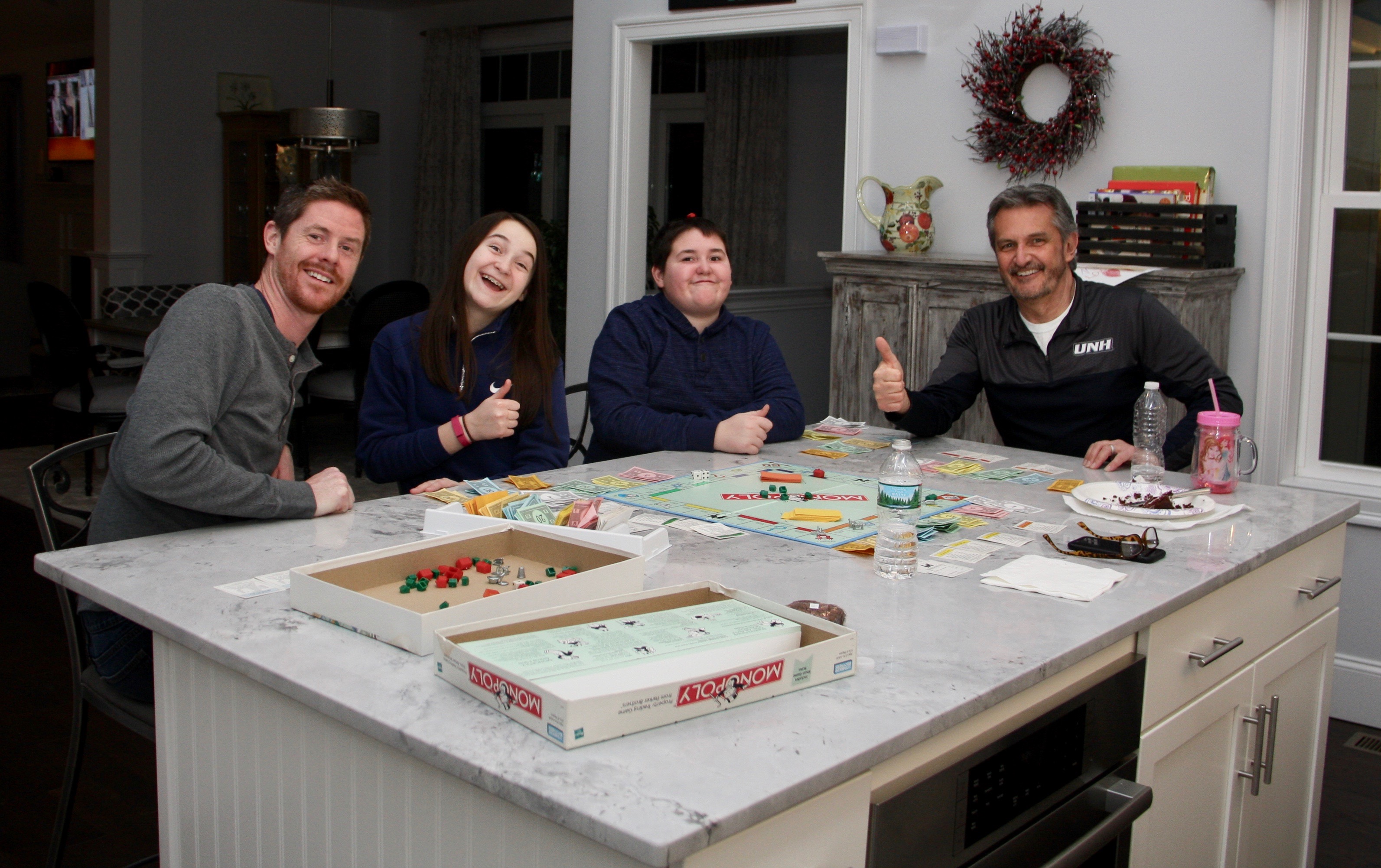 After a yummy Sunday night Grammy meal, Emma got out Monopoly (from my newly cleaned basement) and away we went. Your Mom joined us (she took this picture). Some people don’t like board games (Grammy). Others will play but don’t have a lot of patience. I showed you how to play a quicker version (A) shuffle the property cards and hand them out to each player at the beginning and (B) allow players to make property trading deals any time during their turn. Despite a much faster pace, some people (your Dad & Mom) got tired of it. I went to the bathroom and when I got back, Monopoly was packed up and put away… with no winner! What!? I tell you, that was a hard pill to swallow for a board game junkie like me. A shame, a real shame, there’s gotta be a winner, ha!